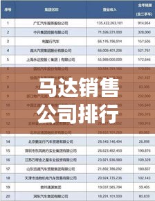 马达销售公司作为动力设备行业的重要组成部分,其排名和影响力日益凸显,这些公司将面临更多的机遇和挑战,需要不断提高技术创新能力和服务水平,以适应市场的不断变化需求,本文所提供的排名和分析,旨在为读者揭示当前马达销售行业的发展现状和趋势,以供参考。