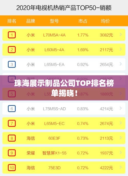 珠海,这座美丽的海滨城市,不仅是旅游胜地,也是众多企业的聚集地,展示制品行业在这里蓬勃发展,许多优秀的公司脱颖而出,本文将为您介绍珠海展示制品公司的排名,以便您更好地了解这一行业的佼佼者。