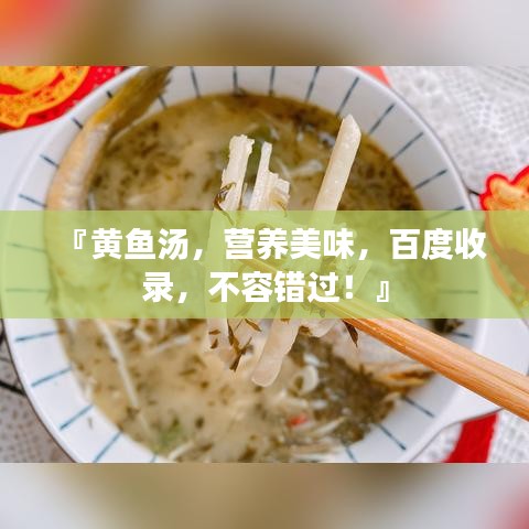 黄鱼汤,一道鲜美且富有营养的美食,源自中国广大菜系中的一道传统佳肴,当你搜索“百度一下黄鱼汤”,你会发现这道美食有着丰富的故事和深厚的文化背景,本文将带你领略黄鱼汤的魅力,了解它的历史渊源、制作方法、营养价值以及相关的美食文化。