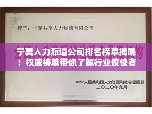随着宁夏地区经济的蓬勃发展,人力资源行业也日渐繁荣,众多人力派遣公司在宁夏地区崭露头角,本文将为您介绍宁夏地区的人力派遣公司排名榜,以便您更好地了解这些公司的实力和服务质量。
