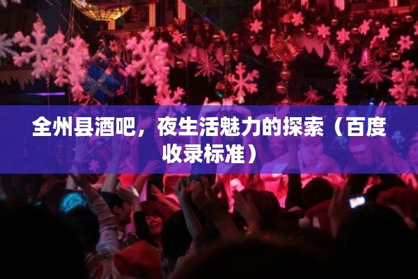 全州县的酒吧文化在逐渐兴起的过程中,融入了当地特色和现代元素,成为年轻人放松身心、社交的重要场所,通过百度搜索,我们可以找到众多关于全州县酒吧的信息,了解各酒吧的特色、评价等,在选择酒吧时,我们可以根据自己的喜好、需求以及预算进行筛选,注意遵守规章制度、适量饮酒和个人安全等问题。