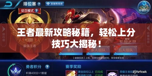 随着王者荣耀这款游戏的持续火热,越来越多的玩家投身于召唤师峡谷的战场,本文将为大家带来一份最新的王者攻略,帮助大家掌握游戏的关键技巧,轻松上分。