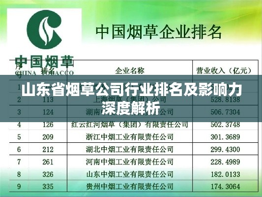 山东省是中国烟草产业的重要基地之一,拥有众多的烟草公司,本文将介绍山东省烟草公司的排名及其行业影响力,帮助读者更好地了解山东省烟草产业的发展状况。