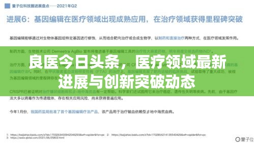 随着科技的飞速发展和医疗需求的日益增长,医疗行业正经历着前所未有的变革,良医今日头条最新消息显示,医疗领域的进步与创新正在以惊人的速度改变我们的生活方式和医疗保健模式,本文将探讨良医在医疗领域的最新动态以及所带来的积极影响。