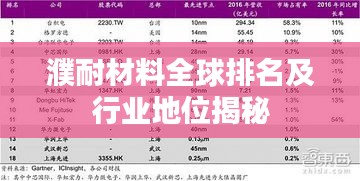 关于濮耐材料的世界排名,需要综合考虑多个因素,如市场份额、品牌影响力、技术实力等,目前,濮耐材料在全球范围内的排名逐渐上升,尤其在某些细分领域中,其排名更是名列前茅,这得益于濮耐材料在技术研发、产品质量、服务等方面的持续投入和努力。