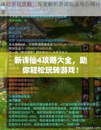 随着新诛仙4游戏的不断更新,玩家们对于攻略的需求也日益增长,本攻略旨在帮助玩家更好地了解新诛仙4的游戏内容,提升游戏体验,更快地达成游戏目标,我们将从角色选择、剧情解析、任务攻略、装备获取等方面进行详细解析。