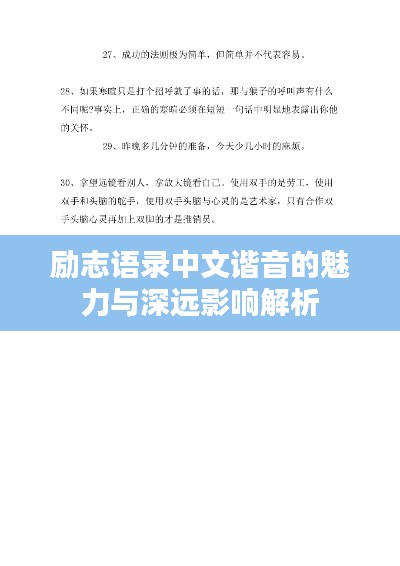 在这个纷繁复杂的世界里,人们总是寻求一种力量,一种激励,一种能够触动人心的励志语录,这些语录的中文谐音,就像是一阵温暖的风,轻轻拂过心灵,带来深深的鼓舞和力量。