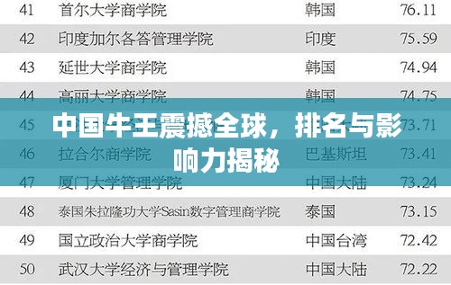 中国牛王在全球排名中占据重要地位,其在农业、文化、经济和生态保护等方面的影响力日益增强,面对挑战,我们需要采取措施保护这一优秀品种,提高其繁育技术和疾病防控能力,以巩固和提升其在全球的地位和影响力。