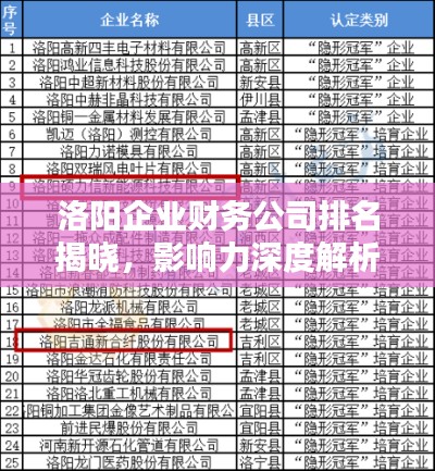 洛阳,作为历史悠久的文化名城,近年来在经济领域也取得了显著的发展,在众多企业中,洛阳的财务公司因其专业的服务、丰富的经验及良好的信誉而备受瞩目,本文将探讨洛阳企业财务公司的排名及其影响力。
