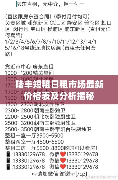 近年来,随着旅游业的繁荣和共享经济的兴起,短租和日租房服务逐渐受到人们的青睐,陆丰作为广东省汕尾市的县级市,其旅游业也在不断发展壮大,吸引了众多游客和商务人士前来,本文将介绍陆丰短租日租房价格表最新情况,并分析市场动态和未来趋势。