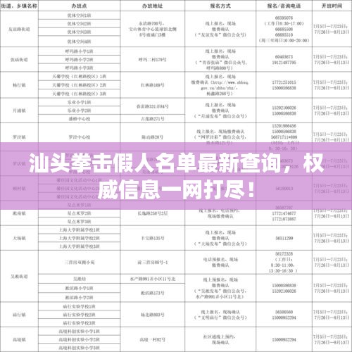 为了回应社会关切,汕头相关部门不断加强对拳击领域的监管力度,并更新了拳击假人名单,您可以通过以下途径查询汕头拳击假人名单最新信息: