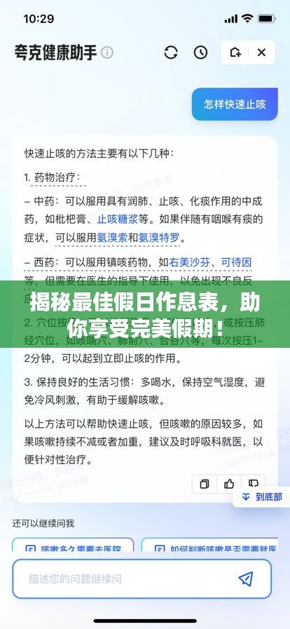通过百度搜索引擎,我们可以轻松找到适合自己的假日作息表,在制定假日作息表时,要充分考虑个人需求、假期时长、个人喜好、体能状况及工作学习需求等因素,要保持良好的作息习惯,合理安排休息时间、娱乐、学习和社交活动,使假期过得充实而有意义,希望这篇文章能帮助您在假期中找到最佳的作息表,度过一个愉快的假期。