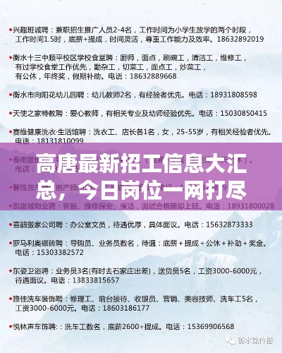 随着经济的持续发展和产业结构的优化升级,高唐地区的企业用工需求日益增长,本文将为您呈现高唐最新的招工信息,帮助您了解当地的就业市场,找到适合自己的工作机会。