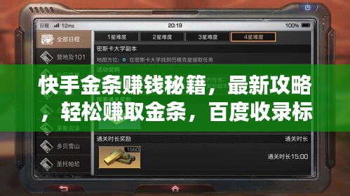 随着移动互联网的普及,短视频平台如快手等日益受到大众喜爱,在快手平台上,金条不仅是一种虚拟货币,更是衡量内容创作者价值的标准,本文将为大家分享快手金条攻略的最新技巧,帮助大家轻松赚取金条,提升在平台的影响力。