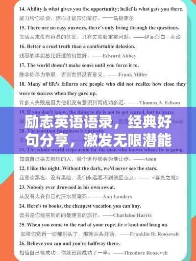 在这个充满挑战与机遇的时代,我们需要一些励志的话语来鼓舞自己,激发内心的力量,以下是一些励志英语语录,希望能为你带来正能量,激发你追求梦想的勇气。