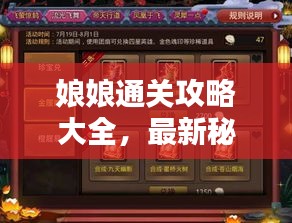 随着游戏产业的飞速发展,各类游戏层出不穷,其中不乏许多深受玩家喜爱的游戏,在众多游戏中,"娘娘"系列游戏以其独特的魅力吸引了大量玩家,为了帮助广大玩家顺利通关,本文为大家带来娘娘通关攻略大全(最新)。