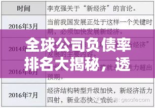 在经济全球化的浪潮下,各国公司的负债率逐渐成为了衡量一个国家经济健康与否的重要指标之一,本文将围绕“各国公司负债率排名榜”这一主题,探讨全球公司负债率的现状、原因以及影响,并揭示其中所蕴含的经济规律。