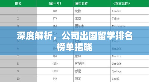 随着全球化的推进,越来越多的公司意识到培养国际化人才的重要性,其中出国留学成为了一种重要的途径,本文将围绕“公司出国留学排名”这一主题展开讨论,从留学的重要性、公司出国留学的发展趋势、留学公司的排名依据以及如何利用出国留学为公司创造更大的价值等方面展开阐述。