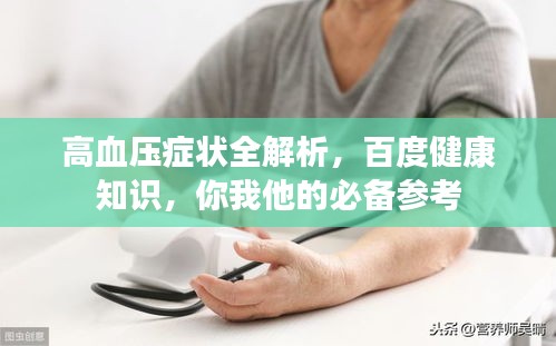 了解高血压的症状对于及时发现并控制疾病具有重要意义,通过百度搜索,您可以获取更多关于高血压的信息,更好地了解这一疾病,采取预防措施,保持良好的生活习惯,有助于降低高血压的发病风险,让我们共同关注健康,百度一下高血压症状,为健康你我他助力。