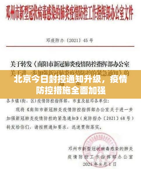 随着国内多地疫情反弹,北京市疫情防控工作面临严峻挑战,为了有效遏制疫情扩散,保障人民群众的健康安全,北京市政府决定采取更加严格的防控措施,此次封控通知旨在减少人员流动,降低疫情传播风险,确保人民群众的生命安全和身体健康。