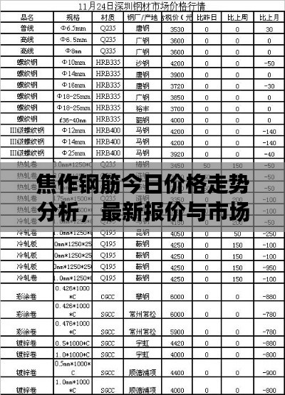 随着建筑行业的蓬勃发展,钢筋作为一种重要的建筑材料,其价格动态一直备受关注,焦作地区作为河南省的重要工业城市,其钢筋市场价格变动对于当地及周边的建筑市场有着重要的影响,本文将对焦作今日钢筋最新价格进行分析。