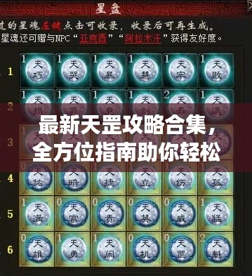 随着游戏产业的不断发展,越来越多的玩家投身于各类游戏中,天罡作为热门游戏的一部分,吸引了大量玩家的关注,为了帮助广大玩家更好地掌握天罡的玩法,我们精心制作了这篇最新天罡攻略大全,本攻略将为你提供天罡的基本介绍、特色玩法、角色介绍、装备选择等多方面的信息,让你轻松成为天罡高手。