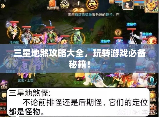 随着游戏版本的更新,三星地煞作为游戏中的一大挑战,其攻略策略也需要进行相应的调整,本文将为大家带来一篇全新的三星地煞攻略,帮助大家更好地应对这一挑战。