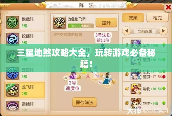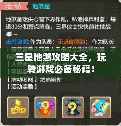 三星地煞是游戏中的一项重要挑战,以其高难度和高奖励著称,在游戏中,玩家需要组建一支强大的队伍,通过一系列关卡挑战,最终战胜地煞,为了成功通关,玩家需要了解地煞的特点和难点,制定相应的攻略策略。