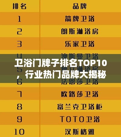 在现代家居装修中,卫浴门的选购至关重要,一个优质的卫浴门不仅能提升家居的整体风格,更能提供舒适的使用体验,本文将为您介绍卫浴门牌子排名前十名,帮助您更好地进行选购。