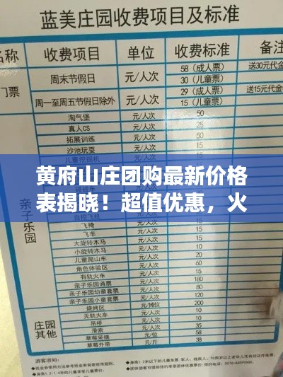 随着季节的变换,黄府山庄一直以其独特的自然风光和优质的服务吸引着众多游客,黄府山庄推出了一系列团购优惠活动,为游客提供了更多的选择和实惠,本文将为您详细介绍黄府山庄的最新团购价格表及相关动态。