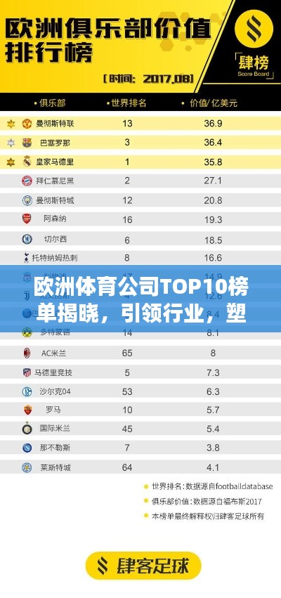 随着全球体育产业的蓬勃发展,欧洲体育公司在其中的地位日益凸显,这些公司凭借卓越的管理、创新的技术和深厚的市场资源,在体育产业的各个领域取得了卓越的成就,我们将为您揭晓欧洲体育公司排名前十名,一起探索他们的魅力所在。