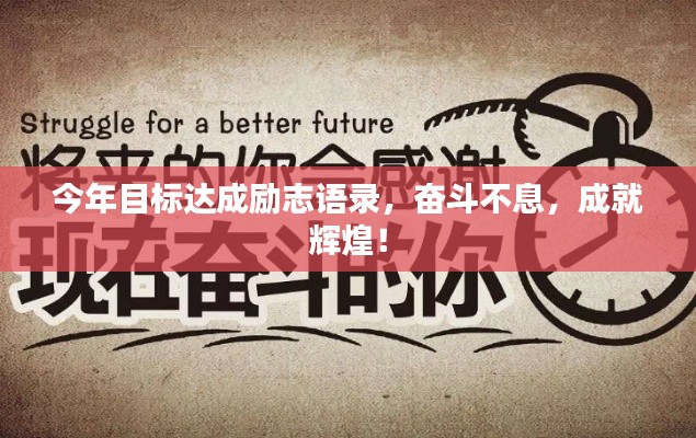 时光荏苒,岁月如梭,新的一年已经到来,我们站在新的起点上,怀揣梦想,展望未来,为了实现心中的目标,我们需要励志前行,以下是今年目标的励志语录,激励我们不断追求、勇往直前。