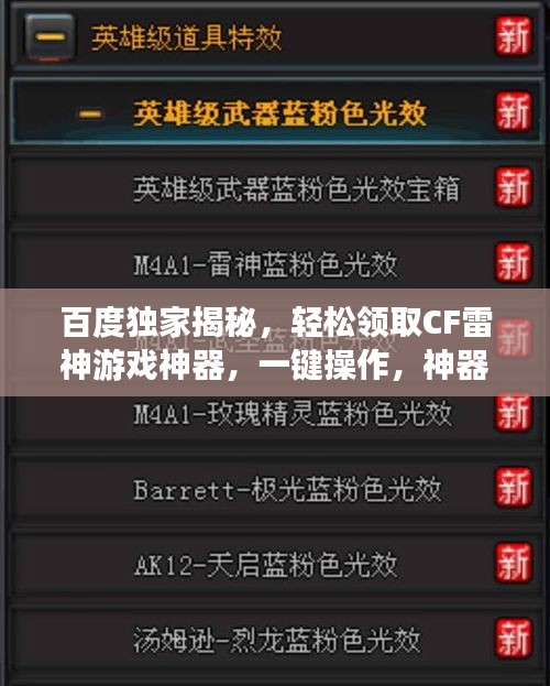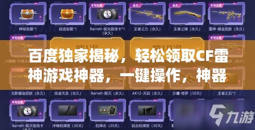 想要轻松领取CF雷神,只需百度一下,就能找到相关的领取方法和渠道,在领取过程中,需要注意账号安全和遵守游戏规则,以确保顺利获得这款神器,希望本文能为您带来帮助,让您在游戏中更加畅快地战斗。