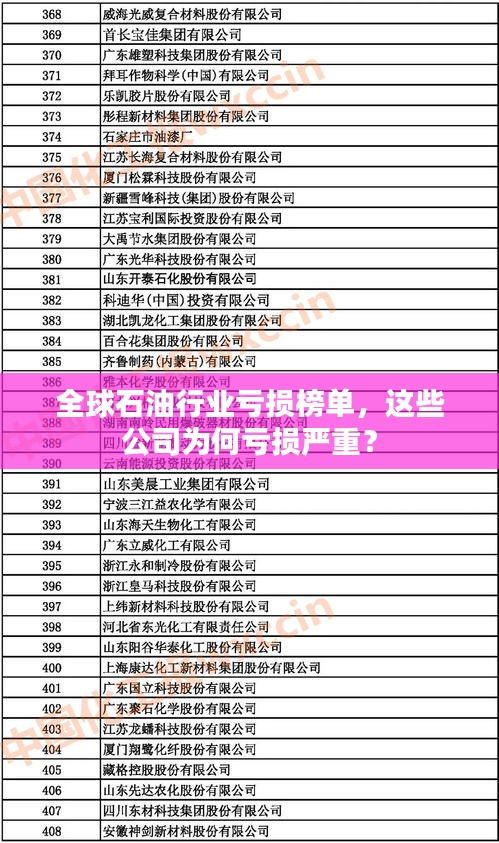 近年来,随着全球石油市场的剧烈波动,许多石油公司遭受巨大损失,这些公司的亏损情况不仅受到全球经济形势的影响,还与地缘政治紧张局势、疫情影响以及供需失衡等因素有关,在亏损排名中,一些大型石油公司也难以幸免。
