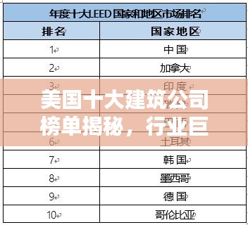 美国的建筑产业在全球范围内享有盛誉,涵盖了众多知名建筑公司的身影,这些公司在设计、建造和管理各类建筑项目中发挥着重要作用,以下是美国的十大建筑公司排名,以供参考。