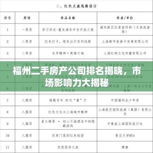 福州作为福建省的省会城市,其房地产市场一直备受关注,随着经济的持续繁荣和城市化进程的加快,二手房产市场也在不断扩大,本文将探讨福州二手房产公司的排名及其市场影响力,为购房者提供有价值的参考信息。