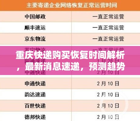 转载请注明来自武汉厨博士餐饮管理有限公司,本文标题:《重庆快递购买恢复时间解析,最新消息速递,预测趋势揭秘!》