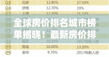 随着全球经济的发展,越来越多的人开始关注全球各地的房地产市场,本文将为您呈现世界房价排名城市排名表,带您了解全球各大城市的房价状况。