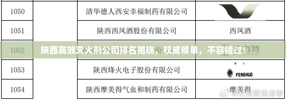 随着社会的不断发展和进步,灭火剂在消防领域的重要性日益凸显,陕西地区,作为我国的消防产业重要基地之一,拥有众多高效灭火剂公司,本文将为您详细介绍陕西地区高效灭火剂公司的排名。