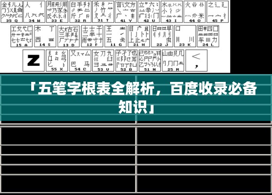在信息时代的今天,电脑已经成为我们日常生活和工作中不可或缺的工具,输入法作为与电脑沟通的重要桥梁,其便捷性和准确性尤为重要,五笔输入法是众多输入法中的一种,其独特的编码方式和较高的输入效率受到许多用户的青睐,本文将为您详细介绍通过百度搜索“五笔字根表”的相关信息。