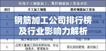 钢筋作为现代建筑的基础材料,其加工质量直接关系到建筑物的安全性和稳定性,随着建筑行业的快速发展,钢筋加工公司的竞争也日益激烈,本文将探讨当前市场上的钢筋加工公司排名及其行业影响力,旨在为读者提供一份有价值的参考。