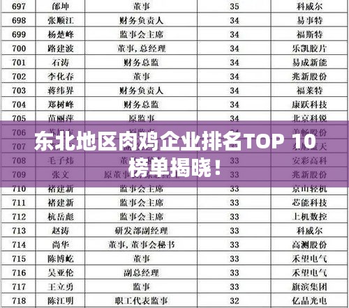 随着经济的发展和人民生活水平的提高,肉鸡产业在中国得到了快速发展,东北地区作为中国重要的肉鸡生产区域之一,涌现出了一批实力雄厚、影响力广泛的企业,以下是东北地区肉鸡企业排名前十名,这些企业在肉鸡养殖、加工、销售等方面均取得了显著的成绩。