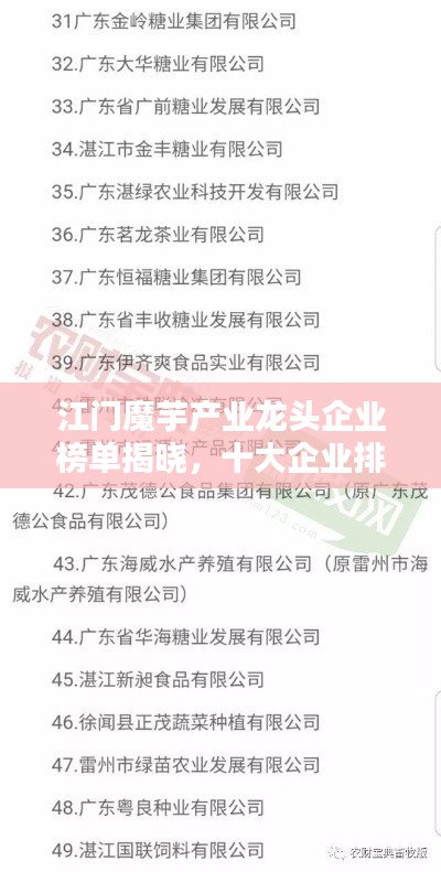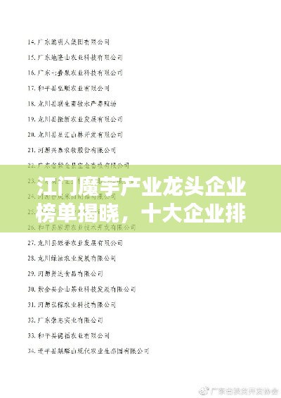随着健康食品市场的日益繁荣,魔芋作为一种营养丰富、低热量的食材备受瞩目,在江门地区,魔芋产业发展迅速,涌现出一批优秀企业,本文将为您介绍江门地区魔芋企业排名前十名,带您了解这些引领行业发展的佼佼者。