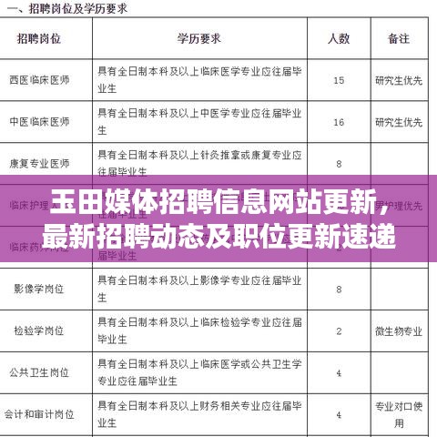 关注“玉田媒体招聘信息网站最新”动态对于想要在当地媒体行业求职的人来说非常重要,通过了解最新的招聘动态和行业概况,求职者可以更好地把握就业机会,实现自己的职业梦想,希望本文能为您的求职过程提供一些帮助。