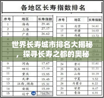 根据最新数据显示,全球长寿城市排名中,一些城市因其优越的自然环境、良好的医疗条件和生活品质,成为众多追求长寿人士的理想居住地,以下是部分排名靠前的城市: