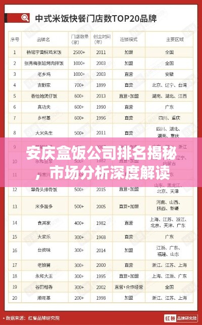 随着城市化的快速发展,餐饮行业在安庆市场上呈现出蓬勃的发展态势,盒饭市场因其便捷、实惠的特点,逐渐成为广大消费者特别是上班族的首选,本文将根据市场调研结果,对安庆盒饭公司进行排名分析,并简要介绍各公司的特点。