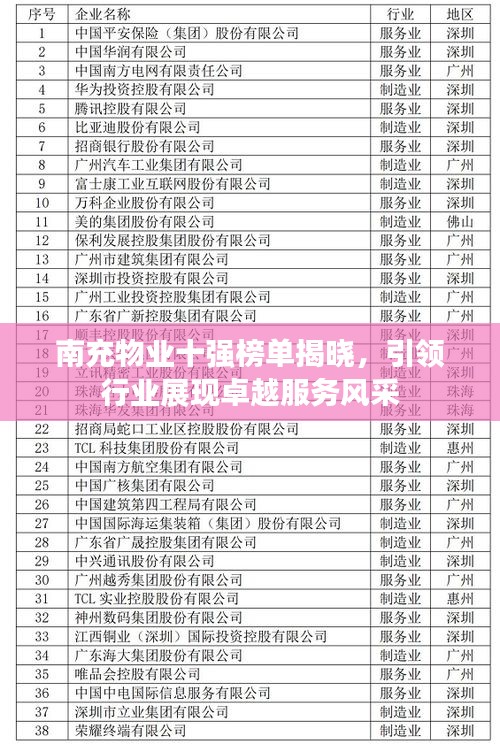 南充市作为四川省的重要城市,近年来在物业管理领域取得了显著的发展成果,随着房地产市场的繁荣,物业管理行业的竞争也日益激烈,在这样的背景下,南充市的物业公司凭借优质的服务和专业的团队脱颖而出,赢得了广大业主的信赖,本文将为您介绍南充物业排名前十名的公司,它们在南充物业管理行业中展现出了卓越的成就和影响力。