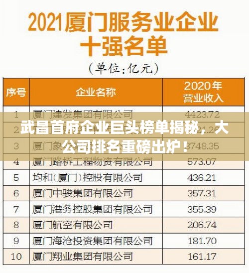 武昌作为湖北省的重要城市,经济繁荣,企业众多,本文将为您介绍武昌首府最大的公司排名,以便更好地了解该地区的企业发展状况。