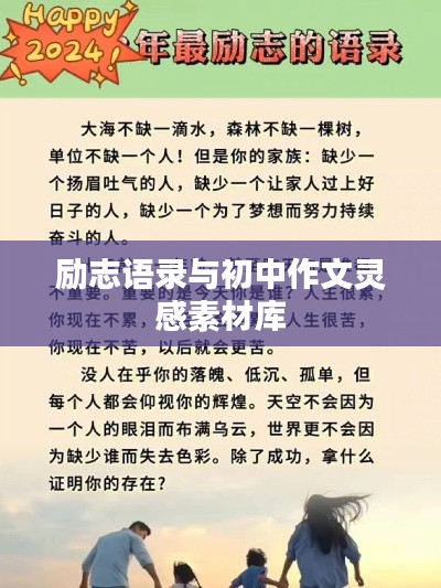 初中时代是我们人生中的宝贵时光,让我们珍惜这段时光,努力学习,追求梦想,在成长的过程中,不忘初心,勇往直前,希望本文提供的励志语录和作文素材能对同学们的写作有所帮助,为大家的学习生活增添色彩。