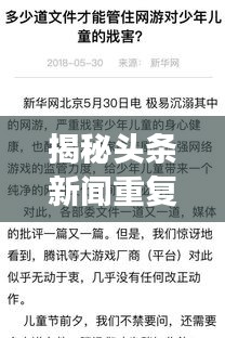 在日常浏览新闻头条的过程中,我们不难发现许多相似或重复的新闻报道,这些新闻可能涉及同一事件的不同角度,也可能是不同地区发生的同类事件,尽管新闻重复在一定程度上有助于读者全面了解某一事件,但过多的重复会导致内容冗余,降低阅读体验。